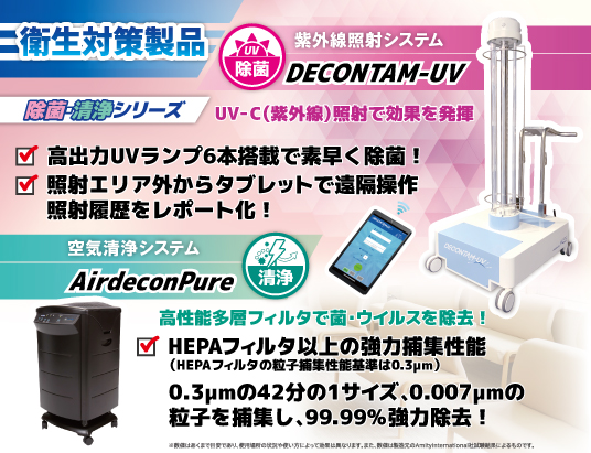 Airdeconシリーズがコロナウイルスに効果的な製品として紹介されています